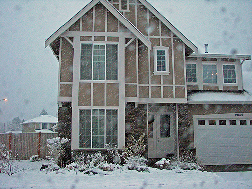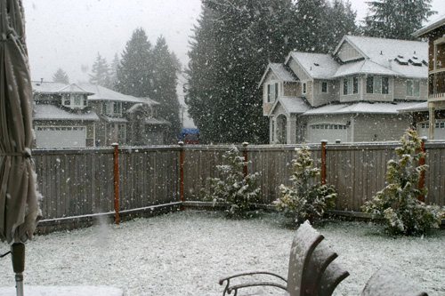 Está nevando lindamente lá fora. Cada floco enorme, parece que estamos dentro daqueles globos transparentes com neve de mentirinha. E é a primeira neve da Julia também, ela ficou olhando pela janela um tempão.