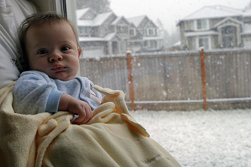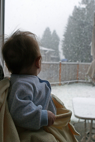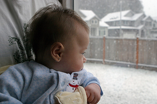 Que fofinha a Julia admirando a neve pela janela…