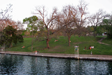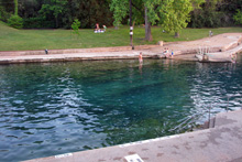 Fomos até lá no final do dia só para dar uma volta, tem um parquinho bacana para as crianças e uma piscina natural enorme com água de nascente (não fiquei com muita vontade de entrar não, a água parecia meio suja, sei lá). Também tem aluguel de canoas para passear no rio, lugar para fazer picnic, e vários gramados bem amplos para a criançada correr e todo mundo se espalhar. Estava bem cheio*, nem imagino como fica no verão.