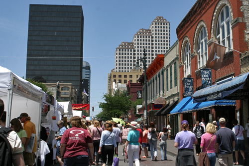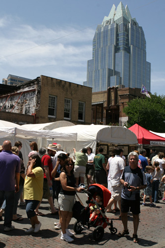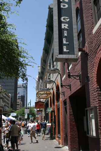 Passamos o sábado passeando em downtown Austin. Começamos estacionando perto da 6th Street, antiga Pecan Street, que é a rua mais agitada da cidade – cheia de bares e restaurantes. Estava tendo um festival de rua, um monte de barraquinhas de comida, artesanato e palcos com bandas tocando ao vivo. Andamos bastante no meio do burburinho, paramos para comer no Roux (que foi bem sem graça), e continuamos o passeio passando pelo Driskill Hotel, um prédio histórico onde os políticos da cidade até hoje fazem seus eventos.