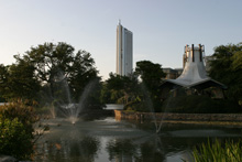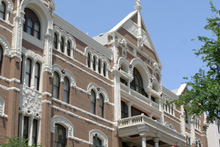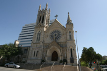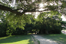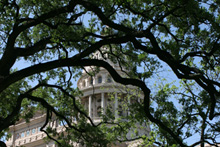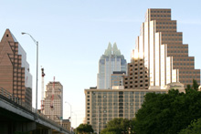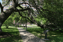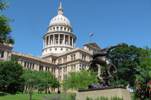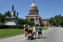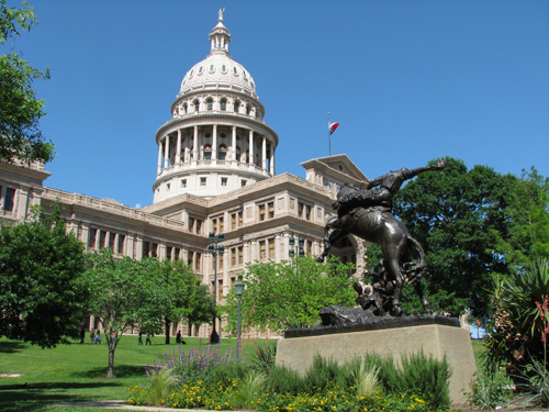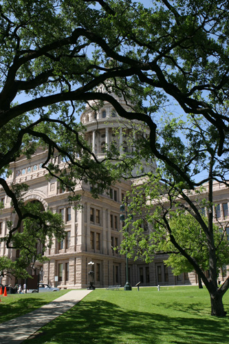 De lá continuamos pela Congress Avenue, passando pelo Museu de Arte Moderna até chegar ao Capitólio, que é a sede do governo do Texas. Estava rolando um protesto pela legalização da maconha e uma banda tocava reggae ao vivo enquanto os protestantes dançavam em frente à escadaria. Hilário. O jardim do Capitólio é lindo, demos a volta por entre os carvalhos centenários e o gramado espetacular. O tempo todo um grupo de turistas em Segways estava nos acompanhando, idéia interessante para fazer um tour. Voltamos para a Congress Ave. Passamos pela catedral gótica, que estava fechada, e pegamos o carro para seguir rumo à Universidade do Texas. Não conseguimos estacionar no campus de placas laranjas (cor oficial da universidade) e desistimos de parar.
