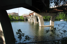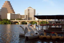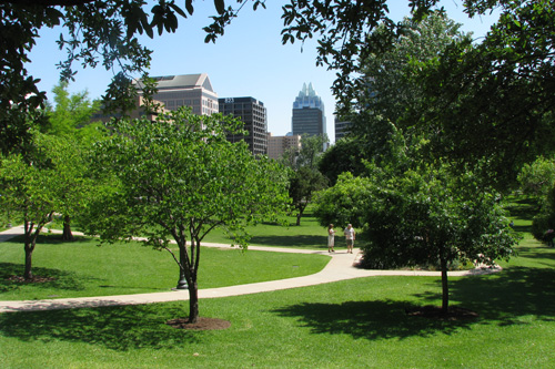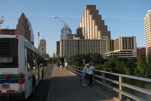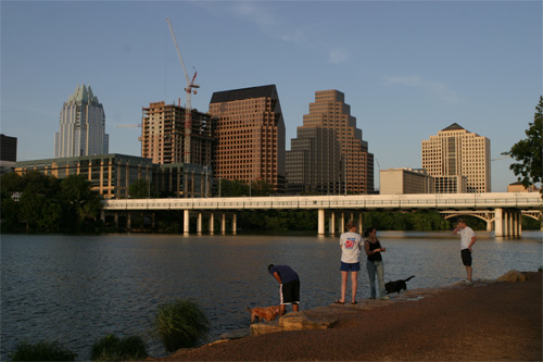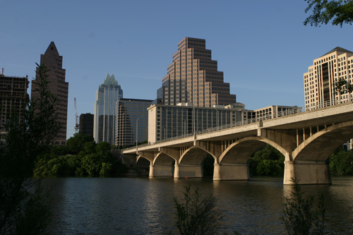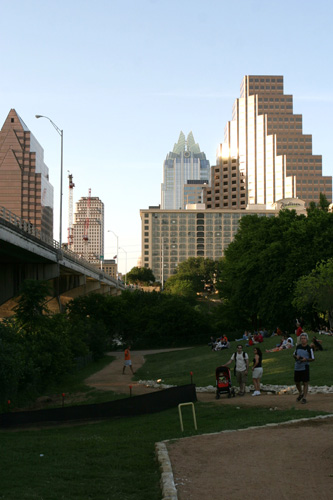 Pegamos a Lamar Blvd que é a rua que faz a fronteira oeste do centro da cidade até a entrada da trilha do Town Lake Park, que é um caminho super arborizado às margens do Rio Colorado que corta a cidade (não é “o” rio Colorado não). Andamos uma boa parte da trilha, da Lamar até a Congress Ave e atravessamos a Congress Bridge, que é a ponte onde moram os morcegos de Austin. Tinha já um grupo de gente sentado no gramado esperando os bichinhos saírem, mas nós não quisemos esperar dessa vez. Passamos por baixo da ponte ouvindo o barulho dos morcegos, mas não sei se eles saíram ou não.