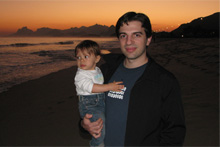 Estava fazendo um dia bonito e resolvemos levar a Julia para ver o mar pela primeira vez. Fomos até a praia de Piratininga, que tem um pôr-do-sol bonito e chegamos bem a tempo de ver as cores lindas do final do dia. Julia ficou olhando o mar espantada, não quis ir na areia e chorou quando o Gabe colocou a mão dela na água. Tentaremos de novo outro dia, mais cedo!