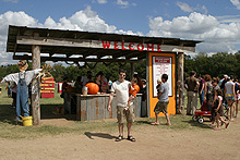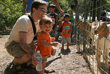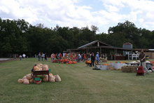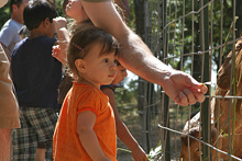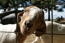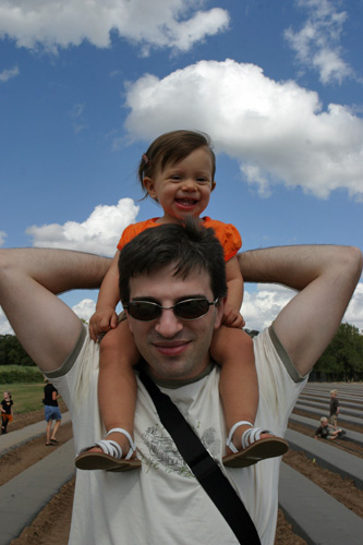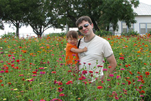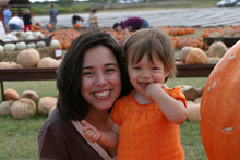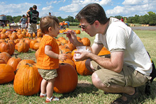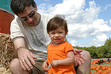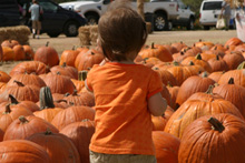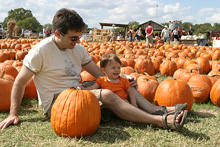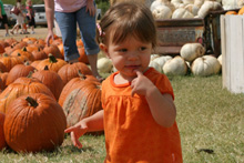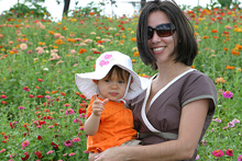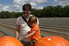 A fazenda é bem organizadinha e tem várias atividades: os tradicionais labirintos no milharal, um para adultos e outro para crianças, pintura de abóbora para os pequenos, faça o seu próprio espantalho, passeio de trator, pintura de rosto para as crianças, uma plantação de flores silvestres, bichinhos de fazenda (nesse caso, eram cabras), muitas abóboras de vários tipos de tamanhos à venda e sorvete de abóbora feito lá mesmo (boooooooom). Julia adorou as abóboras, as cabras e as flores, não curtiu muito o passeio de trator (uma poeirada que só, já que não chove por aqui faz tempo) e tomou sorvete de abóbora comigo mas preferiu o de frutas vermelhas que o Gabe estava tomando. Não compramos nenhuma abóbora dessa vez, estamos esperando chegar mais perto do Halloween, porque como aqui é bem quente não sabemos quanto tempo elas vão durar.