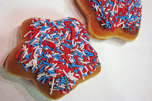 Pra encerrar o tópico da eleição com uma bobeirinha que não escrevi ontem: várias lojas ofereceram seus produtos grátis para quem chegasse lá com o adesivinho “I voted“. Esses donuts da foto eu e o Gabe pegamos de graça no Krispy Kreme, que é o meu lugar de donuts favorito (normalmente eu só como o clássico, sem nada, esse foi gostosinho mas podia ter sido sem esse granulado colorido 😉 mas como era de graça…). A rede Starbucks ofereceu café grátis, a rede Chick-fil-A de fast food ofereceu sanduíches grátis, a rede Ben & Jerry’s distribuiu sorvete de graça e teve até sex shop que ofereceu produtos grátis (!!!). Tudo para incentivar o pessoal a sair de casa – se teve algo a ver com o comparecimento em massa dos eleitores às urnas eu não sei, mas que foi um recorde de 136 milhões de eleitores isso foi.