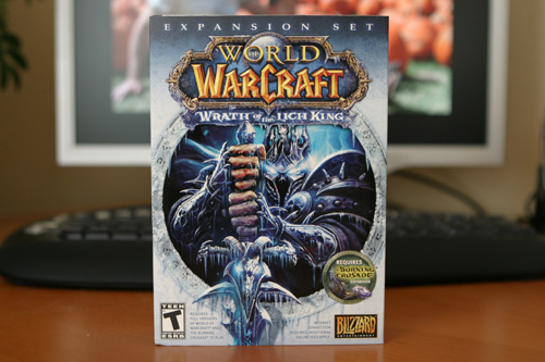 Gabe passou em um posto de gasolina no caminho pra casa e parou na lojinha 7-11. Para a sua surpresa total, eles estavam vendendo a nova expansão de World of Warcraft: The Wrath of the Lich King antes do lançamento oficial que é depois de amanhã. Nós dois estamos voltando a jogar essa semana, tínhamos parado quando a Julia nasceu. Oba! 😉
