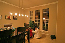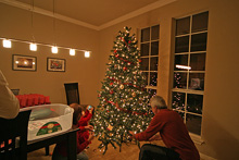 Esse ano montar e decorar a árvore foi BEM mais complicado. Julia queria arrancar todos os enfeites da árvore a qualquer custo, e foi um trabalhão mantê-la longe dos enfeites de vidro. Basicamente tudo que quebra a gente colocou na metade superior, que ela não alcança, e os enfeites de plástico ou outros materias inquebráveis na metade inferior. Como temos muito mais coisas de vidro a árvore ficou mais enfeitada da metade pra cima 😉 Vou comprar uns enfeitinhos a prova de criança para preencher a parte de baixo. Ela adorou a árvore, pena que não é natural, mas novamente vamos ficar fora 2 semanas e a artificial é menos perigosa. O Gato veio checar pra ver se era árvore natural e saiu decepcionado (ele ama o cheiro). E esse ano compramos várias luzes para o lado de fora, incluindo dois cervos iluminados. Segunda e terça colocamos as luzes lá fora e hoje montamos a árvore para finalizar a decoração. A vizinhança está fazendo o mesmo, temos que dar uma volta semana que vem para ver e tirar umas fotos, está ficando bonito.