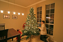 Aqui não tem baby, mas o gatos adoram fazer festa embaixo da árvore. RS Agora, perguntinha sobre fotografia… quais são os settings para tirar fotos da iluminação de fora? Ganhei uma Nikon D40 do maridon o ano passado, mas ainda não aprendi sobre os settings manuais.