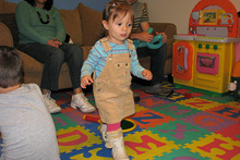 Gente, mal dá prá acreditar! Júlia desfilando com muito charme e elegância, empurrando o carrinho . . . Que postura, heim? Parece uma mocinha! Por outor lado, que carinha mais sapeca de criança feliz! As fotos com o jornal, junto à árvore, segurando na parede e dirigindo o carrinho lembram muito vc., Luciana, apesar dela parecer tb. com o Gabe. Simplesmente L I N D A !