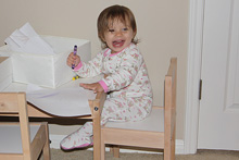 Julia faz um ano e meio hoje e é impressionante como ela está mais amadurecida. Agora ela já fala bastante (quando passou de 80 palavras eu parei de contar, 99% em português), entende a maior parte do que a gente fala, e com a melhoria na comunicação o dia-a-dia ficou um pouco mais fácil. Ela come sozinha, bebe sozinha, escala a sua cadeira e pega o material de desenho sozinha, pede para comer, beber, ir lá fora, ouvir uma música, colo, enfim, até para dormir ela já pediu (milagre). Não mama mais. Está testando a nossa paciência tentando fazer tudo o que não pode mesmo depois de ouvir trocentos nãos, só para ver a nossa reação.