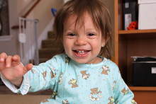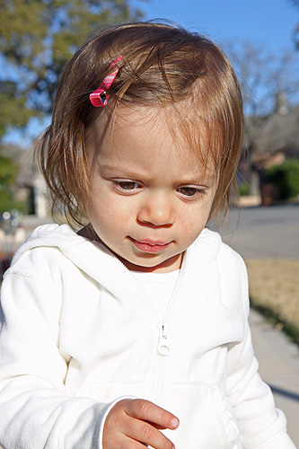 Adora bolhas de sabão, andar na rua, brincar no quintal e perseguir o gato. Está tentando cantar suas músicas preferidas e ama desenhar. Adora livros e pede pra gente ler os seus prediletos repetidamente. Quer pular de todo o jeito e pede pra entrar no berço e começa a pular no colchão falando “pula! pula!”. Repete tudo que a gente fala. Reconhece o seu nome escrito nos desenhos e pede pra gente escrever – fala o seu nome “Dulia”. Vê suas fotos e fala “Dulia”. Tira todas as presilhas do cabelo, a gente tem que colocar sem ela perceber e quando ela descobre tira na hora. Tem nervoso de colocar a mão em tinta, de sujar, de andar sem sapato lá fora. Já sabe que os verbos tem presente e passado “abre/abriu”, “fecha/fechou”. Sabe falar alguns números, sabe exatamente quando tem um objeto ou dois, está trabalhando no três, quatro e cinco – às vezes ela acerta. Sabe algumas cores, nem sempre acerta. Dá boa noite e fala te amo pro Daddy que se derrete todo 😉
