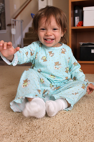 Super linda, como sempre. 🙂 Lú, ela é alta mesmo ou é só impressão minha? Tirei essa conclusão comparando ela com a perna de algum homem que aparece na foto da escada (do Gabe, talvez?); que deve ter sido tirada no dia em que vocês estavam pintando o guardinho dela. Achei ela alta p. 1 ano e meio. é alta mesmo? 😉