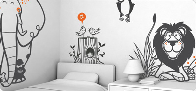 Lindos os adesivos do e-glue, um estúdio de design francês que criou painéis inteiros para você fazer um mural no quarto dos pequenos. E você ainda pode escolher as cores e tamanhos dos adesivos, ou comprá-los separadamente! Estou aqui babando. Achei no Design Spotter.