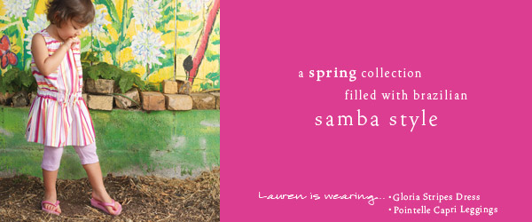 Eu acho uma graça as roupinhas da Tea Collection, as roupas são estilo asiático moderninho e colorido, e já há alguns meses eles lançaram uma coleção inspirada no Brasil – no catálogo tem fotos das crianças no Jardim Botânico, Santa Teresa, Brasília, e as roupas são bem bonitas. O preço é um pouco caro em comparação as demais lojas de crianças aqui nos EUA (mais caro que Baby Gap e Gymboree por exemplo), mas eles tem boas liquidações de vez em quando.
