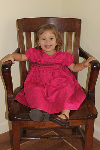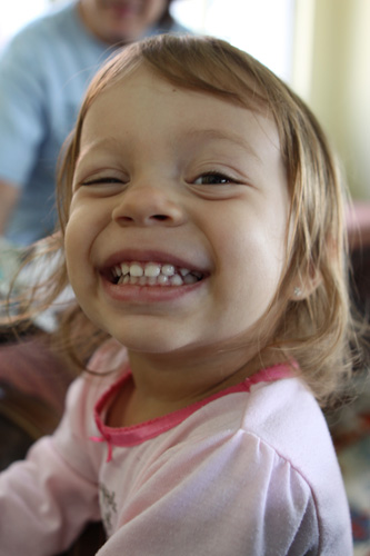 Está falando frases mais compridas e inventando suas próprias músicas (haja lá lá lá). Deu uma melhorada no inglês por conta do contato com os tios e primos, num instante já estava falando “come here” pra todo mundo e “stop” nas brincadeiras brutas dos meninos mais velhos. Mas o vocabulário é 98% português e vai continuar assim ainda por um tempo, até ela entrar pra pré-escola. Continua uma beijoqueira de marca maior e nunca nega um abraço pra mamãe e pro daddy. Não dorme mais no berço, há 2 meses se recusou e nunca mais voltou. A palavra que a gente mais ouve é “sozinha”, porque ela quer fazer tudo que pode e que não pode sozinha. Adora ver Alice no País das Maravilhas, Peter Pan e Dálmatas. Seus livros preferidos são Boizinho Brioso, A História do Gato, Little Pea e The Paper Bag Princess.