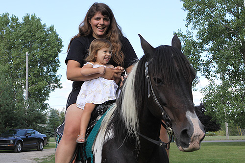 Se refrescando em um lago, em Michigan Primeira vez andando a cavalo, com a tia Rebecca