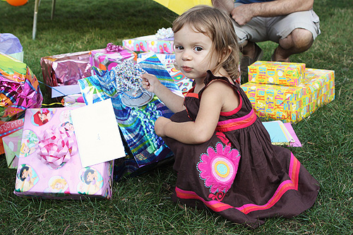 Sorrisão pra câmera! Brincando com a fita de um dos presentes na sua festa de 2 anos