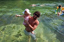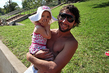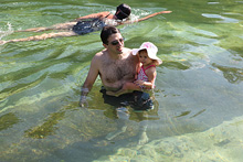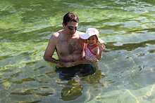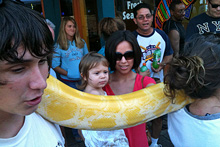 Hoje nós levamos o meu irmão pra passear por Austin. Fomos ao Salt Lick pra ele provar o melhor churrasco texano da cidade, depois a Barton Springs pra dar um mergulhinho na piscina natural (eu nunca entro, muito gelada pro meu gosto), uma voltinha a pé pela 6th Street (onde vimos essa cobra gigante) e finalizando com o pôr-do-sol do Oasis. Julia está adorando ter o tio por aqui, ela acordou de manhã e foi direto bater na porta dele, não quis nem saber de chamar a gente 😉