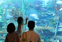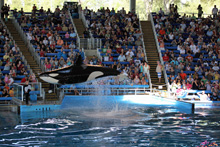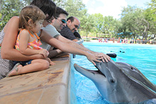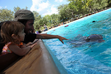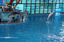 Entramos e Julia quis ver as aves variadas que ficam ao redor de um laguinho, tem vários tipos e super coloridas, ficamos lá até a hora do show das baleias. O show foi o mesmo com a música cafona que vimos ano passado, e a Julia não quis ficar. Meu irmão não tinha visto ainda então fiquei lá com ele enquanto o Gabe passeava com a Julia. De lá ainda vimos um pouquinho do show dos golfinhos e belugas, os cavalos Clydesdale e a piscina de golfinhos. Fizemos carinho nos golfinhos por um tempo, compramos peixinhos pra eles, depois de uma passada no aquário fomos para as piscinas.