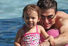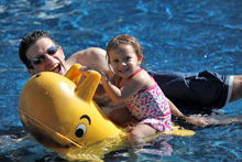 Ficamos na piscina de ondas, na piscininha para crianças (uma graça, rasinha e com chafarizes, escorrega e piso macio) e numa outra que tem um balde gigante que vai enchendo no terceiro andar e depois vira a água toda em quem está lá embaixo. Essa piscina tem um monte de brinquedos que espirram água, é bem legal. Tem ainda um toboágua e um rio com bóias (lazy river) mas não fomos por causa da Julia. Só saímos das piscinas quando anunciaram que iam fechar (as 17h) e aí fomos andar pelo resto do parque até fechar as 18h. A gente queria passar ainda na Riverwalk pra mostrar pro meu irmão mas não conseguimos, Julia capotou ainda no carrinho dentro do parque, então resolvemos ir direto pra casa. Todas as fotos de hoje quem tirou foi o meu irmão.