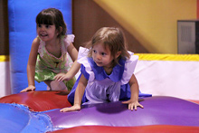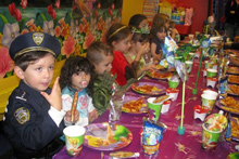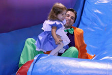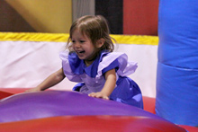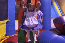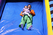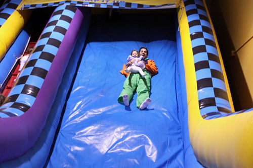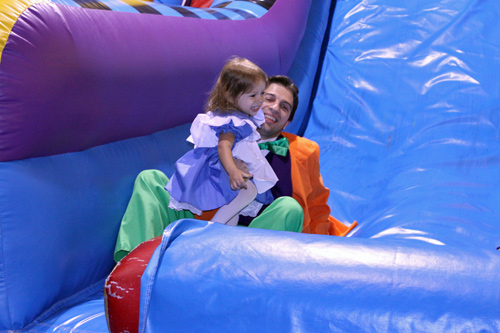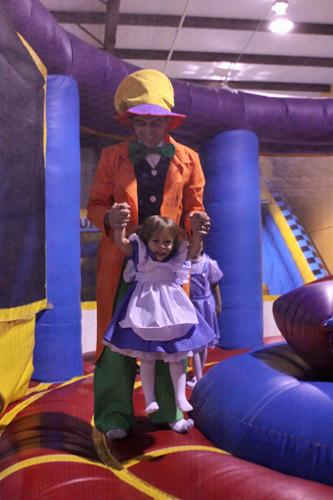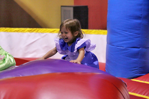 No dia do Halloween fomos a uma festinha de aniversário de uma das amiguinhas da Julia. Foi num lugar chamado Pump it Up que tem montes de brinquedos infláveis do tipo pula-pula. As crianças foram todas fantasiadas e nós resolvemos ir também. Julia amou, pulou até dizer chega, foi no tobogã com o Gabe trocentas vezes, e no final todas as crianças sentaram juntas pra comer e cantar parabéns.