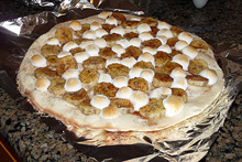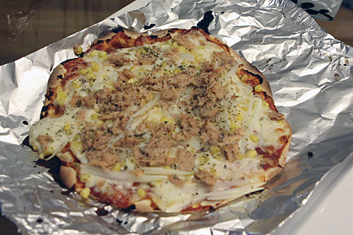 Quando eu ainda morava em Washington e fazia experimentos culinários com a Lu, fizemos a primeira noite da pizza lá em casa. Peguei uma receita de massa online, compramos um monte de ingredientes que a gente acha em pizzas brasileiras e gostamos do resultado. Daí em diante foram muitas noites da pizza, chamando os amigos, testando ingredientes, tomando vinho, fazendo pizza doce no final, enfim, foram bons tempos!