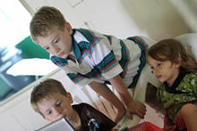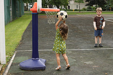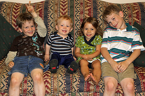 As crianças ficaram assistindo filmes no laptop até a chuva passar, e depois foram brincar no parquinho lá fora mesmo com tudo molhado ainda. Julia brincou muito com as tias e primos, e estava cansadíssima no final do dia. Balanço, gangorra, “basquete”, badminton, correu, dançou, não parou um minuto. Minha sogra tirou a foto dos 4 primos (eu não vi na hora que ela tirou essa foto) e falou que foi a maior dificuldade colocar os 4 sentadinhos no sofá assim. Pena que ela não colocou todo mundo sentado no sofá azul, esse sofá colorido atrapalhou a foto.