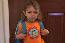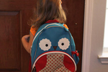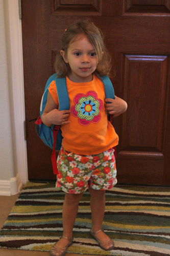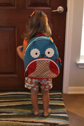 Essa semana chegou a mochilinha dela que estava fora de estoque desde que comprei há meses, e ela foi pra escola saltitante com a tal mochila. Ela normalmente me pede colo pra entrar, mas no dia da estréia da mochila ela entrou andando sozinha, entrou no parquinho onde a turma estava e foi direto mostrar pros amigos, me dando tchau de longe, na maior animação.