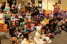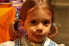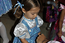 A festa anual de Halloween pra criançada brasileira foi nessa sexta, e como sempre os pequenos se divertiram bastante. Todo mundo fantasiado, incluindo os adultos. Teve um showzinho pras crianças, depois o tradicional trick-or-treating (nessa festa o que eles ganham são brinquedinhos baratinhos, porque já vão ganhar uma montanha de doces no dia de Halloween de verdade) e a correria normal de um bando de crianças juntas. Nós fomos a família de Oz: Julia foi fantasiada de Dorothy e nós acompanhando – eu de espantalho, Gabe de leão e a minha mãe de homem de lata. Ela adorou a fantasia, principalmente por causa dos sapatos vermelhos brilhantes 😉 Não ficamos muito tempo na festa porque ainda estamos um pouco doentes, e Julia chegava a estar com os olhos vermelhos de sono, porque ela não dormiu hoje durante o dia. No domingo a gente coloca as fantasias de novo pro trick-or-treating de verdade.