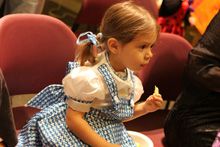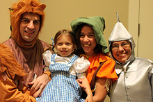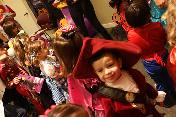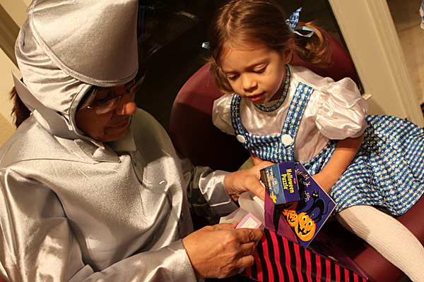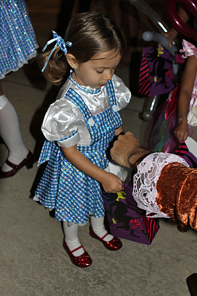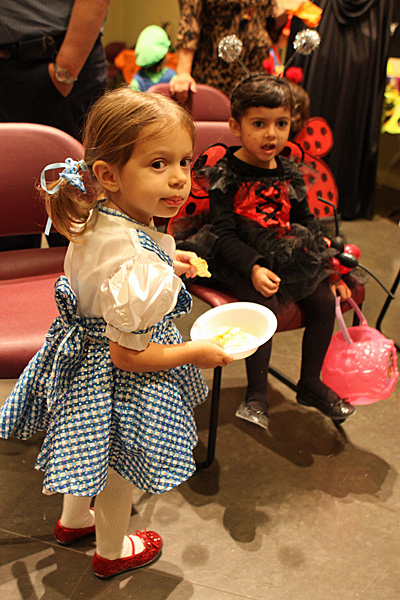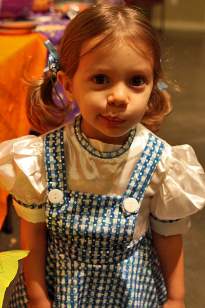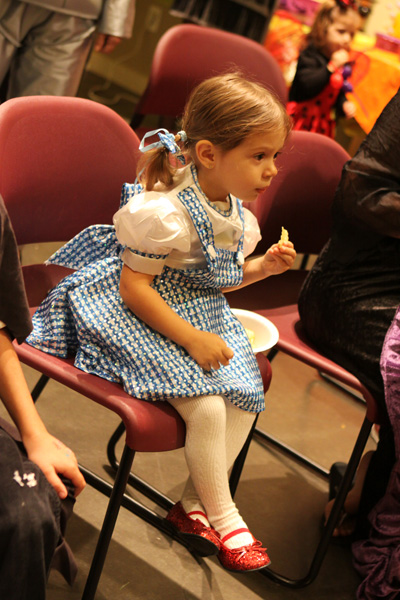 A festa anual de Halloween pra criançada brasileira foi nessa sexta, e como sempre os pequenos se divertiram bastante. Todo mundo fantasiado, incluindo os adultos. Teve um showzinho pras crianças, depois o tradicional trick-or-treating (nessa festa o que eles ganham são brinquedinhos baratinhos, porque já vão ganhar uma montanha de doces no dia de Halloween de verdade) e a correria normal de um bando de crianças juntas. Nós fomos a família de Oz: Julia foi fantasiada de Dorothy e nós acompanhando – eu de espantalho, Gabe de leão e a minha mãe de homem de lata. Ela adorou a fantasia, principalmente por causa dos sapatos vermelhos brilhantes 😉 Não ficamos muito tempo na festa porque ainda estamos um pouco doentes, e Julia chegava a estar com os olhos vermelhos de sono, porque ela não dormiu hoje durante o dia. No domingo a gente coloca as fantasias de novo pro trick-or-treating de verdade.