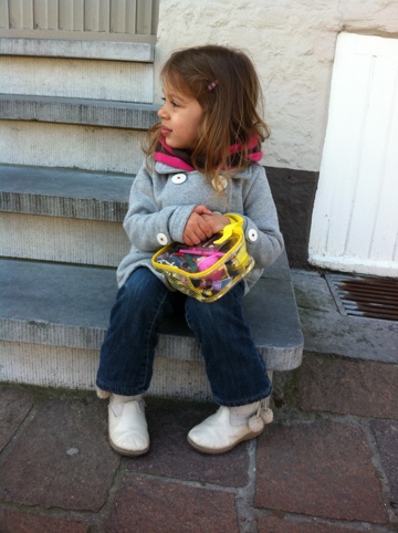 Julia segurando a bolsinha cheia dos ‘tesourinhos’ dela e fazendo o ‘carão’ (de perfil e tudo, modelo profissional!!) tá demais!!!