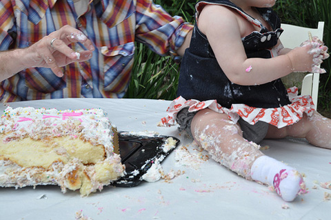 Uma tradição americana de deixar muito brasileiro de cabelo em pé: no aniversário de 1 ano (normalmente a primeira vez que as crianças aqui comem um bolo), o pessoal literalmente coloca um bolinho de aniversário na frente da criança pra ela comer do jeito que quiser. Vale tudo e ninguém interfere, na verdade o pessoal quer mesmo ver a criança pegar o bolo, destruir e se sujar toda. Tem gente que tira a roupa da criança e deixa só de fralda mesmo, pronta pra bagunça. Sinceramente eu não aderi a tradição americana, até porque o aniversário de 1 ano da Julia foi no Brasil 😉 Tem várias fotos aqui e mais aqui. E aqui tem um link que explica como planejar o “evento” de destruição do bolo durante a festa de 1 ano.