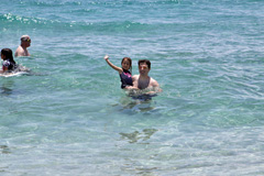Nao, ate que a praia e bem funda mesmo, nao e rasinha/calminha nao. Mas a agua e uma delicia, temperatura maravilhosa e transparente. Mas acho que na area de Miami/Ft Lauderdale tem praias tao boas quanto essa tambem.