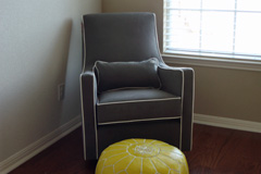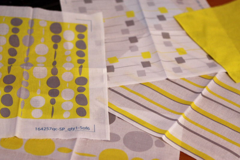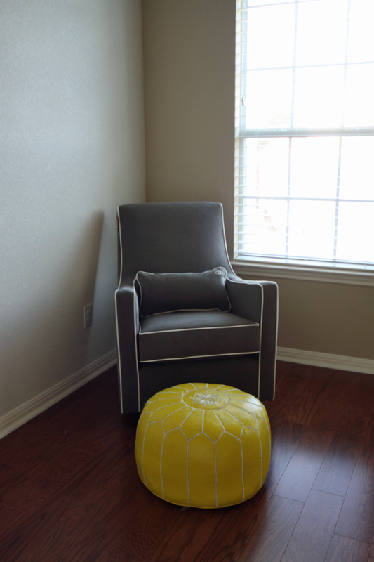 Chegaram umas coisinhas pro quarto do Eric: o pufe, a poltrona, a cômoda e as amostras-teste dos tecidos que eu desenhei. A poltrona, o pufe e a cômoda já estão no quarto, agora só falta colocar o berço lá também pra eu decidir a posição dos móveis antes de pintar. Ah, e o piso ficou pronto, claro 🙂 Os tecidos eu acabei de ajustar as cores porque o cinza-claro ficou tão claro que virou branco, agora já arrumei e fiz o pedido dos tecidos na quantidade certa pra fazer tudo – as cortinas, saia do berço, protetores laterais, capa pro trocador. Também escolhi as cores pras paredes hoje, mas só vou poder comprar as tintas e pintar quando a gente voltar de viagem no final do mês. São três cores, dois tons de amarelo, um claro e um escuro, pras listras da parede e um cinza claro quase médio pro resto.