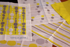 Brigada, eu também adorei o piso novo! O de bolas com fundo amarelo vai ser o tecido das cortinas. O outro de bolas com fundo cinza claro (na foto parece fundo branco porque o cinza ficou claro demais) vai ser a parte de dentro do bumper.