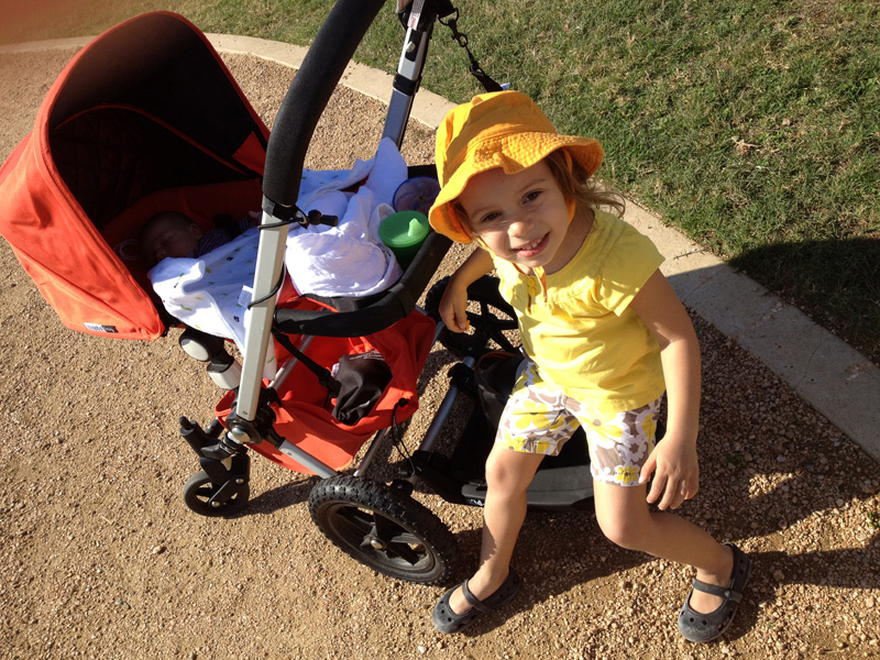 A Julia simplesmente AMOU o negócio, eu estava meio preocupada dela não gostar e de fazer um drama que o carrinho era dela, mas ela rapidinho entendeu que era pras “crianças mais velhas” e se achou o máximo. Já usamos bastante aqui pra passear na rua, ir ao shopping, ela curte e o Eric também, que fica olhando pra irmã o tempo todo logo ali pertinho dele.