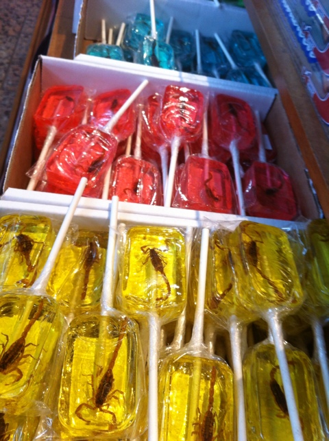 acho que até experimentaria só pra colocar um nojinho na minha mãe…hahaha… filhos não prestam hahahahah não, eu não comeria o escorpião,por que ai já é de mais…..a proposito de que sabor eram esses peculiares pirulitos? não entendi o lugar onde eram vendidos. Austin? se fosse algum lugar no oriente eu até acharia normal mas em u.s.a é estranho.
