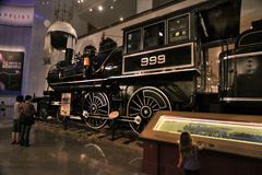 De lá saímos na Transportation Gallery, onde ficamos todos impressionados com a maquete super detalhada da ferrovia que vai de Seattle a Chicago. Todos os prédios importantes representados, as cadeias de montanhas, os trens se movendo, muito bem feito! Uma locomotiva a vapor domina esta área, e um painel interativo mostra como a locomotiva funciona – do carvão entrando na caldeira e esquentando a água para que o vapor empurre o trem.