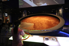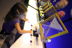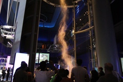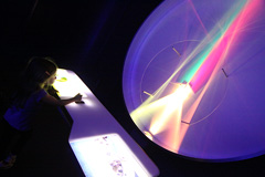 Depois fomos para a área Science Storms, que mostra cientificamente como vários fenômenos da natureza acontecem, como tornados, ondas no mar, avalanches, entre outros. Tem também muita coisa sobre luz, cores, energia solar, gás, a quantidade e variedade de experimentos é enorme. Como é tudo interativo, mesmo não entendendo ainda as explicações do que estavam vendo, as crianças gostaram e brincaram bastante, o difícil foi sair dali.