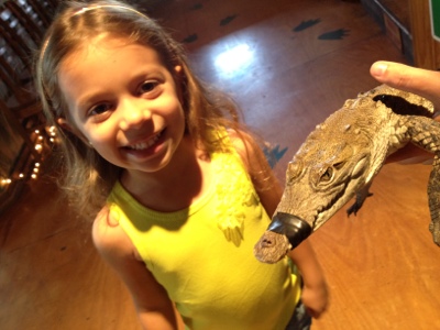 Ola Luciana, nossa ate me deu arrepio quando olhei o jacare(ainda bem que estava de boca selada), a Julia nao teve medo?Que graça o Eric sentado com o cardapio nas maos, parece ate que esta escolhendo, ficou otima as fotos.Estou “viajando” com voces,boa viagem……