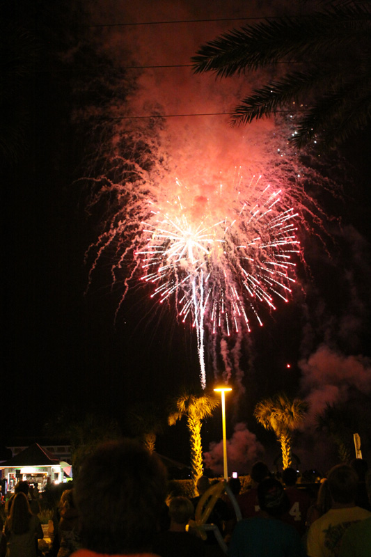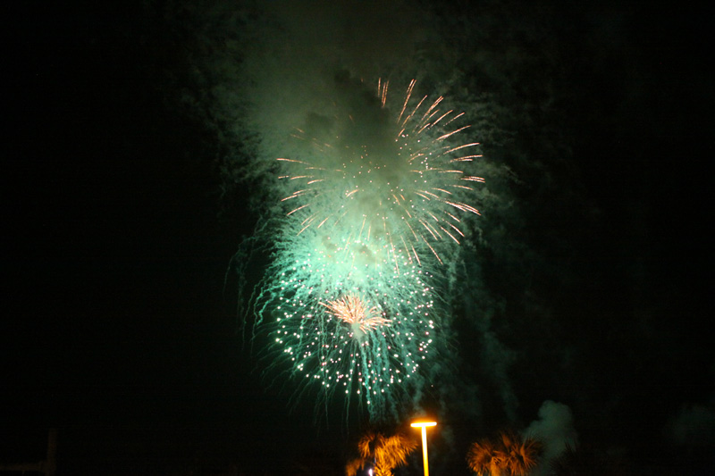 Jantamos no Margaritaville, um restaurante bobinho e nada demais, mas era o único que acomodava o nosso grupo grande em menos de uma hora. Mal acabamos o jantar e vimos os fogos, que foram bonitos mas nada espetacular como outros lugares onde já assistimos, piorados pelo vento que estava soprando em direção à praia e levando a fumaça pra cima de todo mundo. Mesmo assim todo mundo curtiu (menos a Julia que odeia barulho e ficou comigo dentro do restaurante olhando de longe e o Eric chorou com o barulho no final), e a saída foi lenta mas organizada (o policiamento estava intenso).