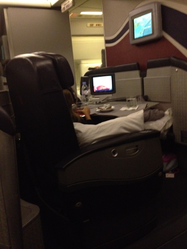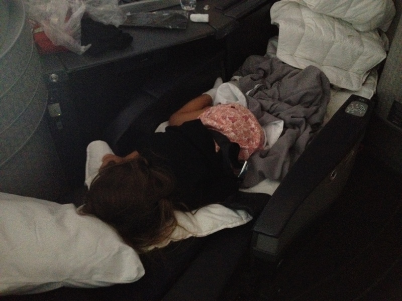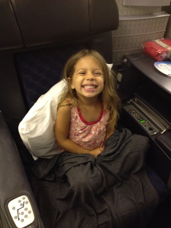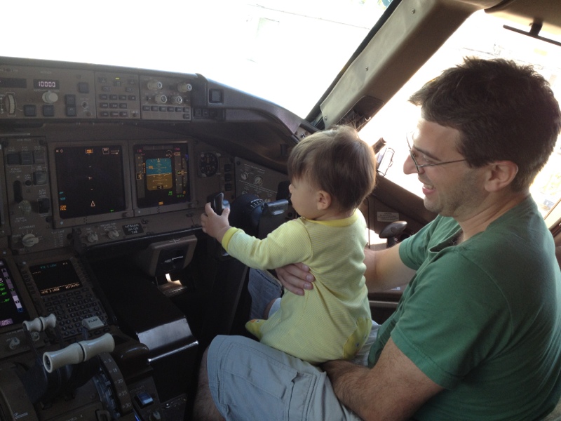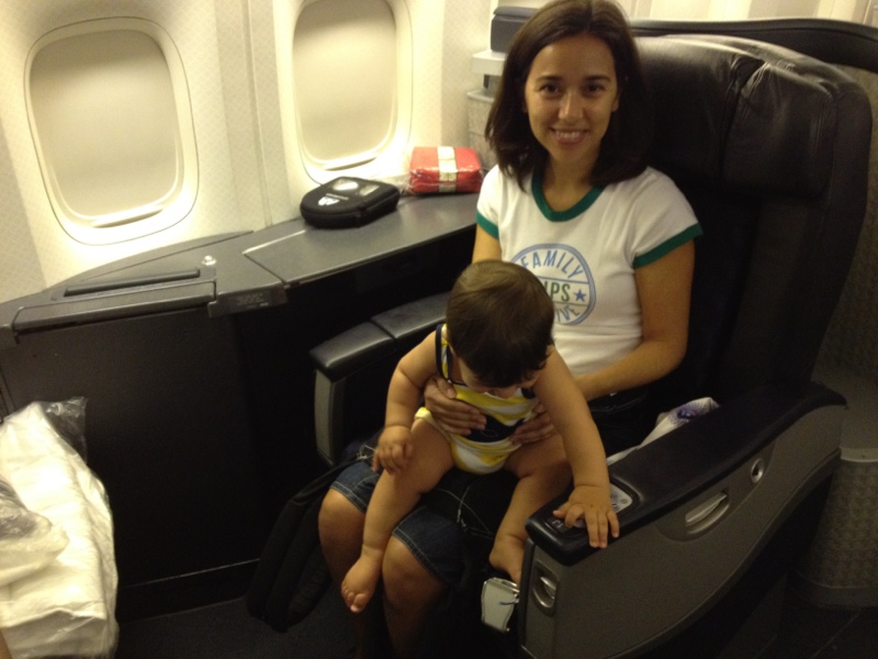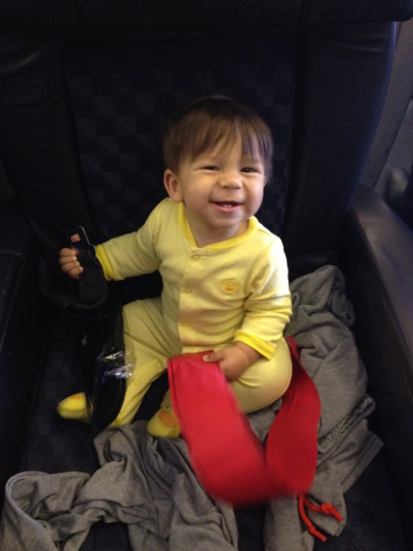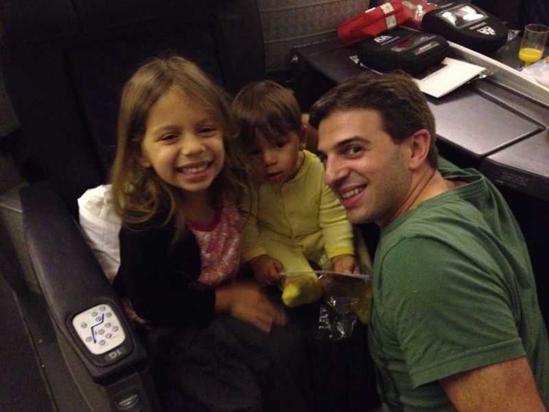 Chegamos quarta à noite, depois de dois vôos tranquilos. As crianças se comportaram maravilhosamente bem novamente, dormiram praticamente o vôo inteiro (11h de duração de Tóquio pra Dallas, menos que na ida!). Claro que a gente ter vindo de primeira classe ajudou, com aquelas poltronas maravilhosas que viram camas. A Julia dormiu que parecia que estava no seu quarto, acordou toda descabelada que nem em casa. O Eric dormiu comigo super bem, uma beleza, só deveria ser permitido poltronas assim em vôos longos! 😉 A tripulação foi toda super simpática, e os pilotos chamaram as crianças pra conhecer a cabine quando pousamos em Dallas. A Julia não quis entrar, desconfiadíssima, ficou olhando da porta. Já o Gabe aproveitou pra entrar com o Eric, o comandante fez eles sentarem e colocou o chapéu dele no Eric e tudo, haha.