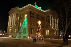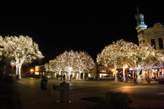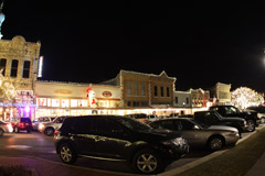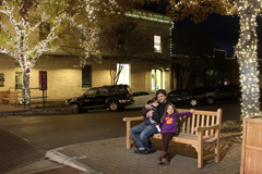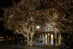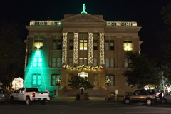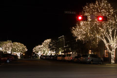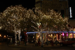 Continuando os nossos passeios pra ver as luzes de Natal aqui no Texas, fomos até Georgetown, que é uma cidade aqui perto de Austin que tem uma praça histórica muito bonitinha. Eles decoraram a praça e nós fomos lá conferir. Achei bonito, mas podiam ter caprichado mais, depois de Johnson City achei a decoração de Georgetown fraquinha. Mas a Julia gostou, claro, e ficou correndo com umas crianças pela praça (incrível como sempre que um monte de crianças se juntam elas querem logo correr). Tinha um monte de gente tirando fotos de família na praça, em frente a árvore de Natal. Como a gente já conhecia a cidade e não estávamos fazendo compras de presentes, nem ficamos entrando nas lojinhas bonitinhas que tem ali, fomos direto jantar ali perto. Uns amigos encontraram com a gente no restaurante, e depois do jantar resolvemos conferir uma casa famosa na cidade pela sua decoração de luzes sincronizadas com música. O negócio é mesmo profissional: você sintoniza numa estação tem rádio específica (tem uma placa na frente da casa informando o número) e aí fica ouvindo e assistindo a “dança” das luzes. Muito bem feito, e os vizinhos não tem que ficar sofrendo escutando as mesmas músicas 1000 vezes por dia!