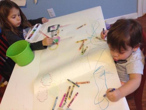 Material de desenho e pintura: os meus filhos puxaram a mim no interesse por desenho, todos dois adoram desenhar e o Eric fica facilmente 20-30 minutos desenhando sentadinho na mesinha deles. De lápis de cera a aquarela (pra Julia, porque o Eric a gente só deixa usar o lápis de cera que é lavável e faz menos estrago), eles estão sempre querendo desenhar. Pra viajar eu gosto de levar o kit Color Wonder da Crayola, que são canetas que só desenham no papel especial, não riscam móveis e outras superfícies.