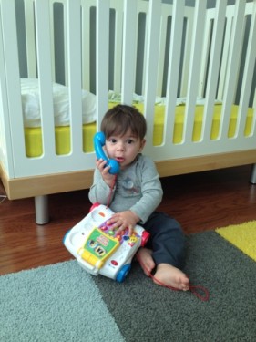Telefone de brinquedo: o telefone era da Julia e agora passou pro Eric, que também adora. O nosso tem vários sons e fala os números quando você aperta (é bem irritante na minha opinião, mas eles nem ligam). Claro que esse telefone não substitui o interesse que eles tem pelo meu telefone, mas enfim…