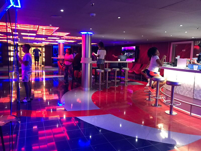 Não pense que não existem espaços para as crianças e adolescentes: com 3 clubes separados por idade – Camp Ocean de 2 até 11 anos (divididos em subgrupos), Circle C de 12 a 14 e O2 para 15 a 17 anos, a molecada está bem servida com atividades dia e noite. Um parque aquático com dois toboáguas grandes e área splash, uma área de esportes com mini golfe, mesa de totó, pingue-pongue, circuito de arvorismo, o Sky Ride (pra pedalar pendurado num trilho no topo do navio), quadra de basquete; um fliperama bem grandinho e um cinema IMAX (ambos pagos a parte), oferecem diversão para a criançada (e adultos também). Uma biblioteca temática Dr Seuss, personagens como Gatola da Cartola (Cat in the Hat), Sam I am, Thing 1 e Thing 2 aparecem em festas, atividades e um café da manhã super bonitinho (pago à parte).