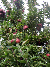 A área em torno do moinho é coberta por macieiras de diferentes tipos, e você pode andar por lá e pegar maçãs diretamente da árvore, de graça. Se você quiser levar pra casa, aí tem que pagar $5 por uma sacola que você pode encher até a sacola quase não suportar mais o peso.