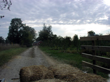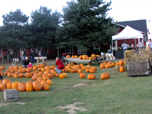 Esse lugar que eu fui tinha além da plantação de maçãs, um campo de abóboras e outro de framboesas. Você vai de um campo ao outro em uma carroça puxada por um trator, sentado em um monte de feno.