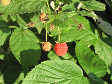O campo de framboesas é no mesmo esquema das maçãs, se quiser comer é de graça, se for levar, paga. Eu nunca tinha visto um campo de framboesas, os arbustos são pequenos, mais ou menos 1 metro de altura, e as frutinhas ficam amontoadas nas pontas dos galhos.