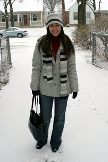 Hoje eu estava com preguiça de levantar de manhã, Gabe me perturbando porque estávamos atrasados e de repente ele me sai com essa: “Levanta, vem ver a neve”. Eu achando que ele estava falando isso só para me acordar, nem dei bola e continuei dormindo, só resmunguei um “yeah, right!” e ele tentando me convencer que era sério, abriu as cortinas na minha cara. E nevou mesmo, estava tudo branquinho, e melhor ainda, continuava nevando. Levantei na mesma hora e fui me arrumar correndo pra ir lá fora. Gato estava curioso, olhando pela porta de vidro, e o levamos do lado de fora pra pegar uma nevezinha. Ele não gostou muito não, miou logo pra voltar pra dentro de casa (já as duas gatas da minha sogra passam o dia inteiro andando na neve, vai entender). Fomos para um asilo-clínica para cantar músicas de Natal, como fazemos todos os anos, e de lá para a casa da minha sogra – as fotos abaixo são desse trajeto.
